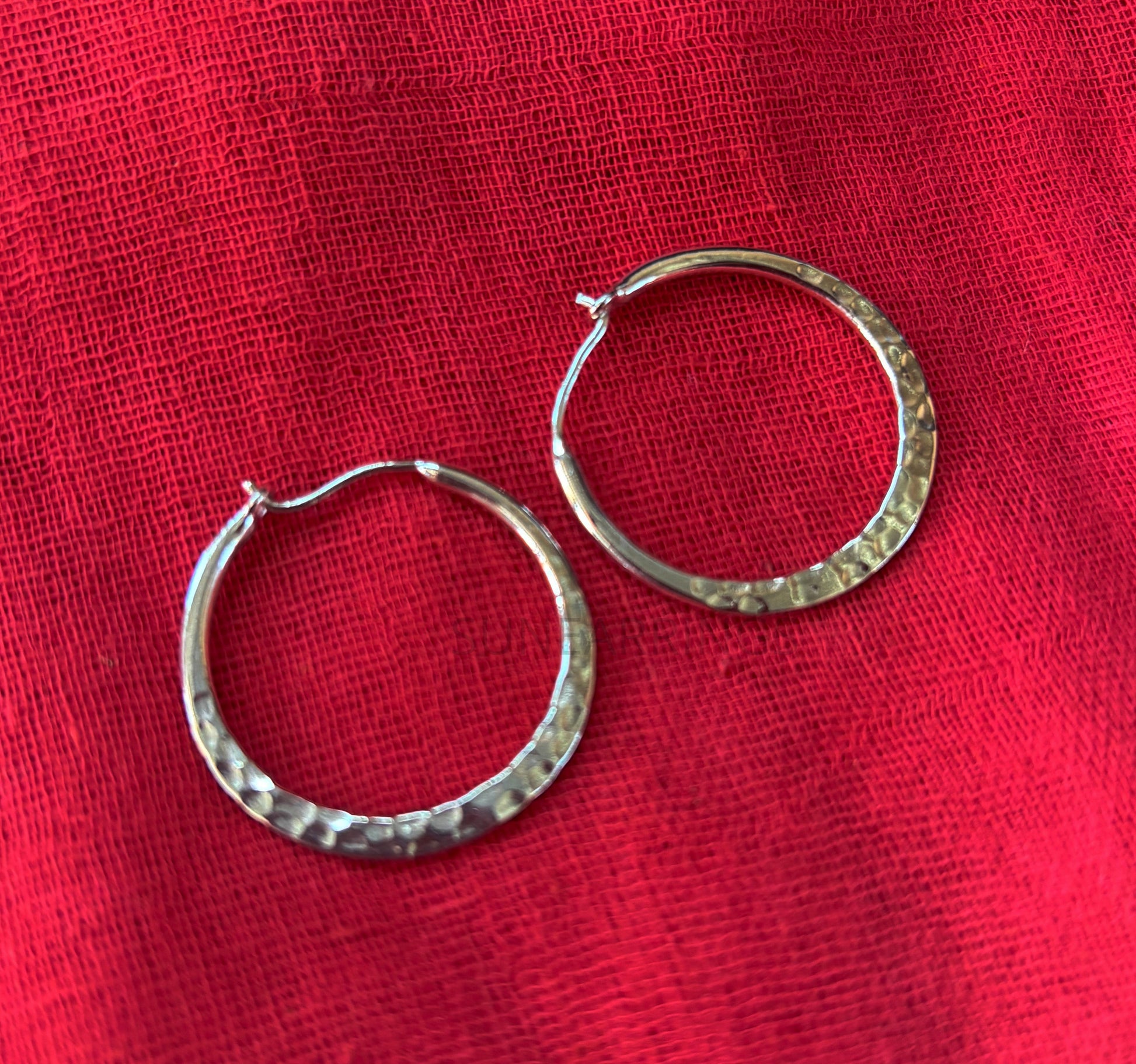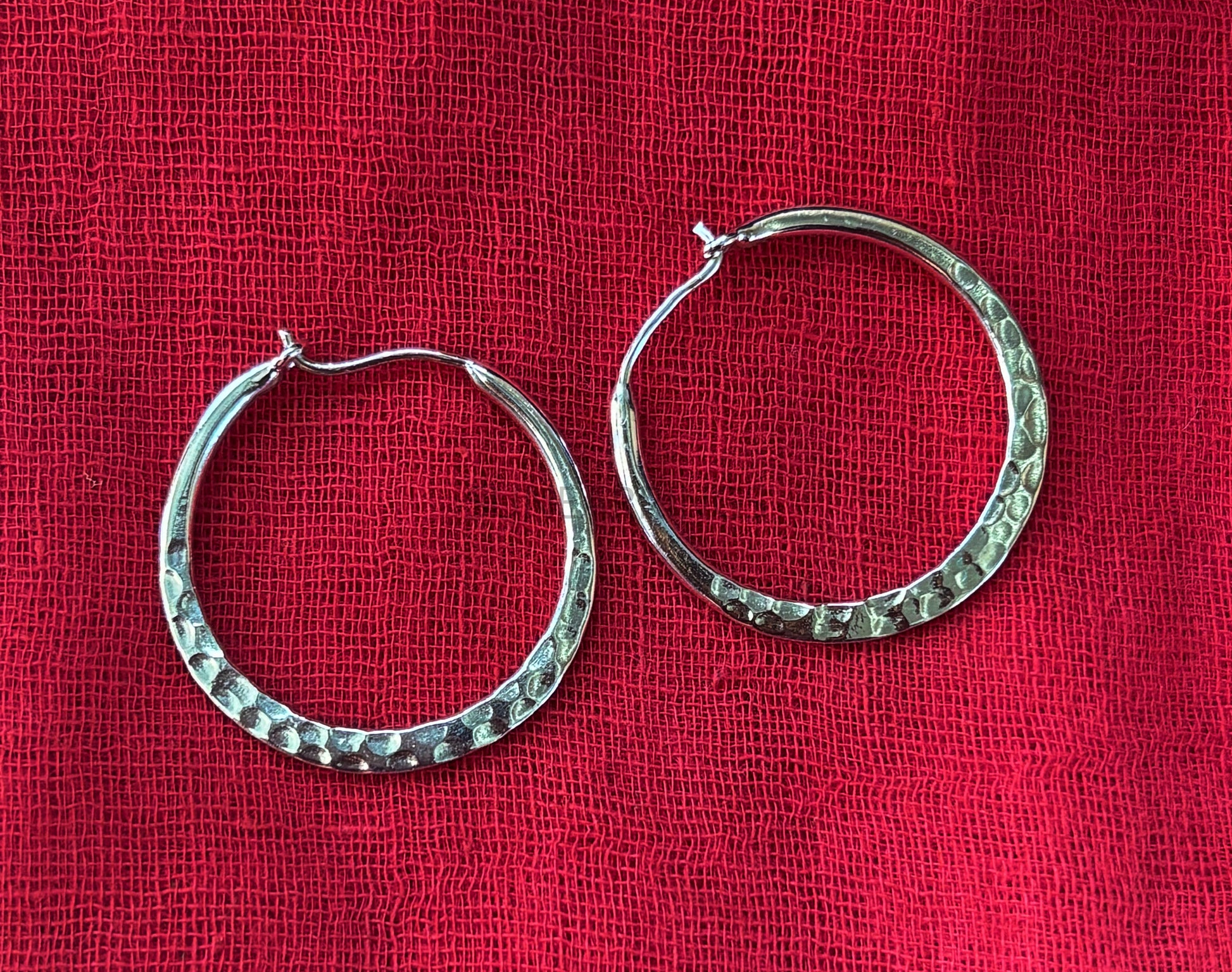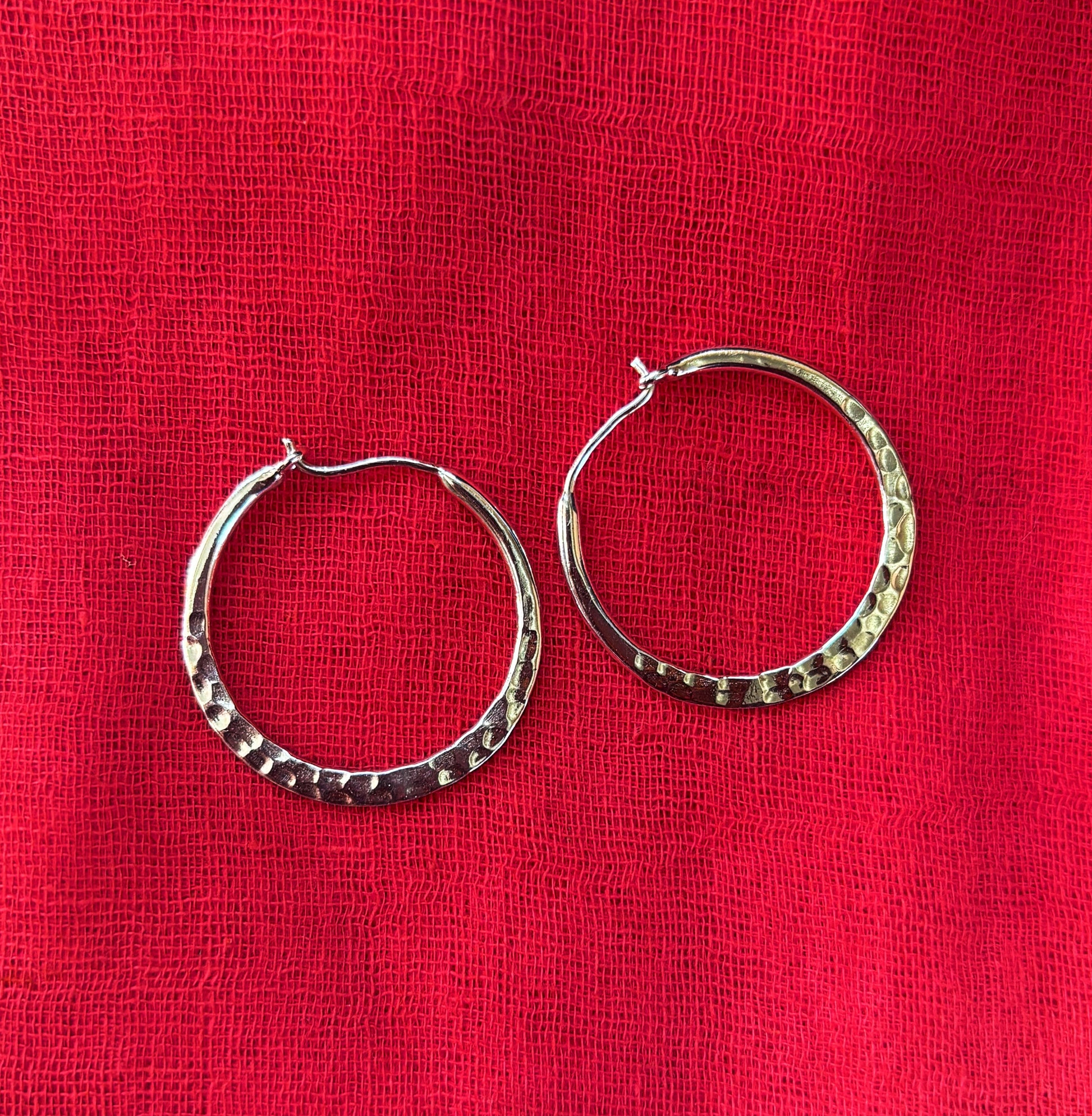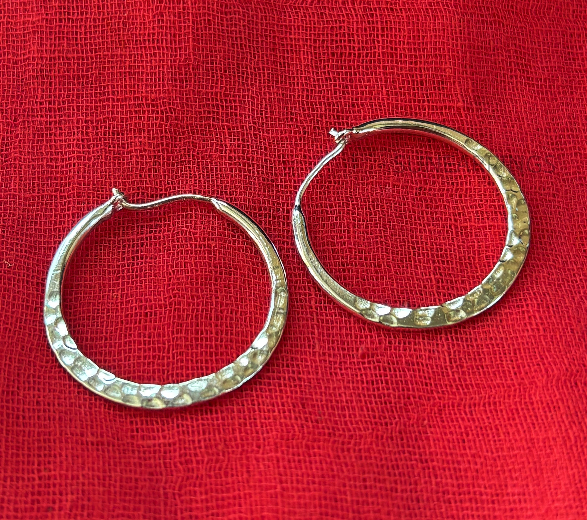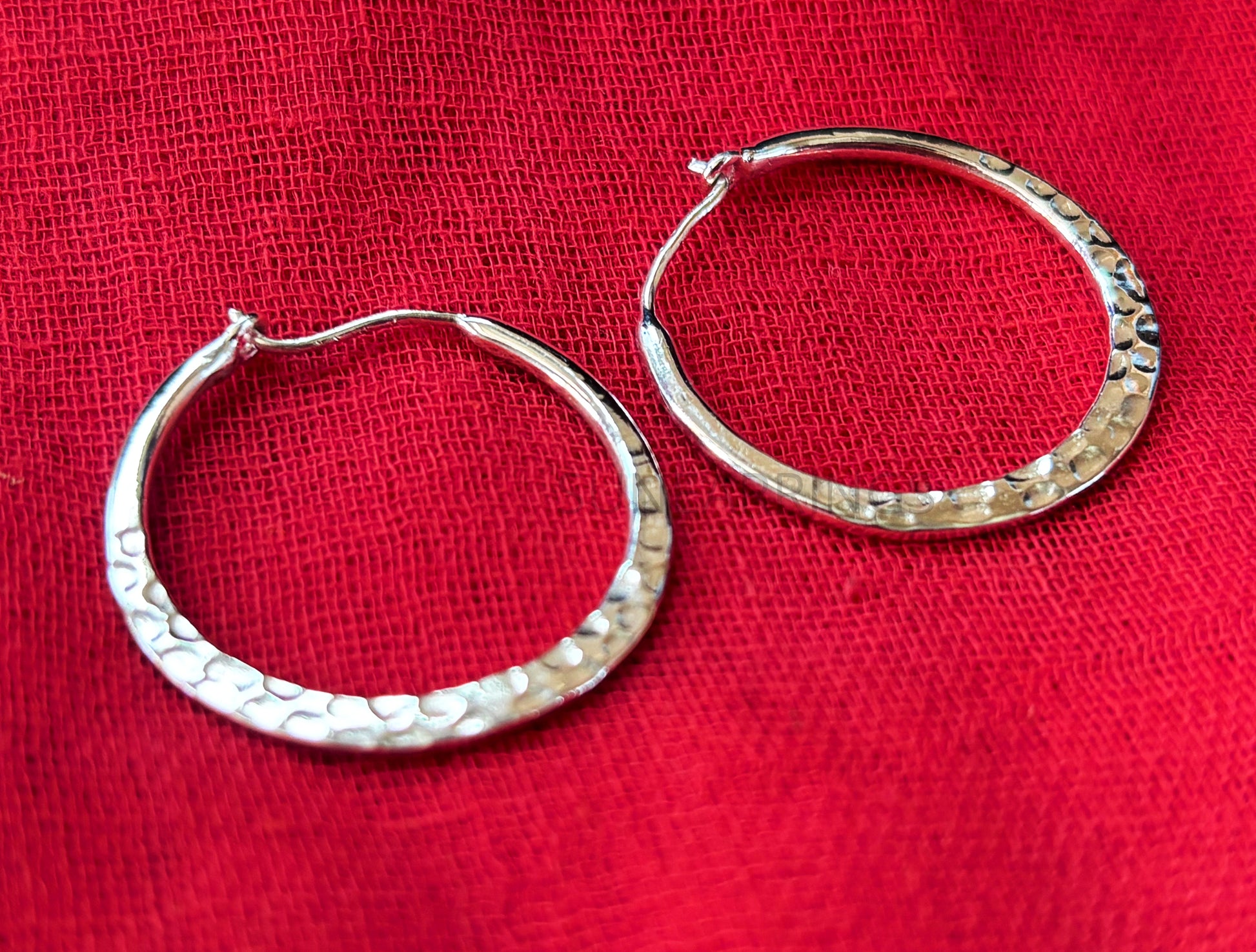 30MM Circel Shape Hoops Earrings-925 Sterling Silver Hammered Hoops-Handmade Open Circle Earrings-Elegance Hoops Earrings-Gift For Her