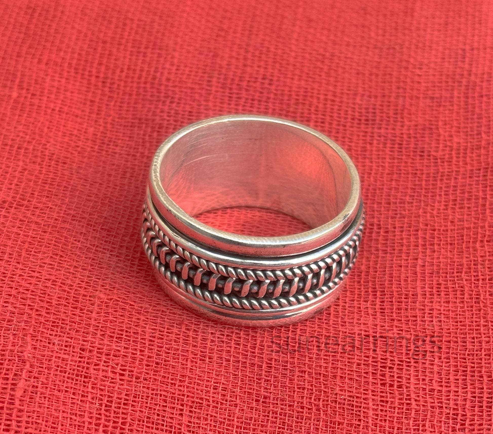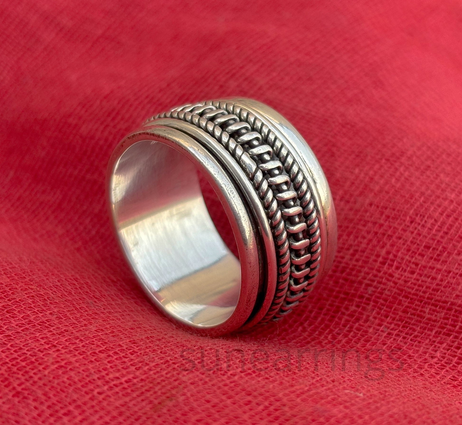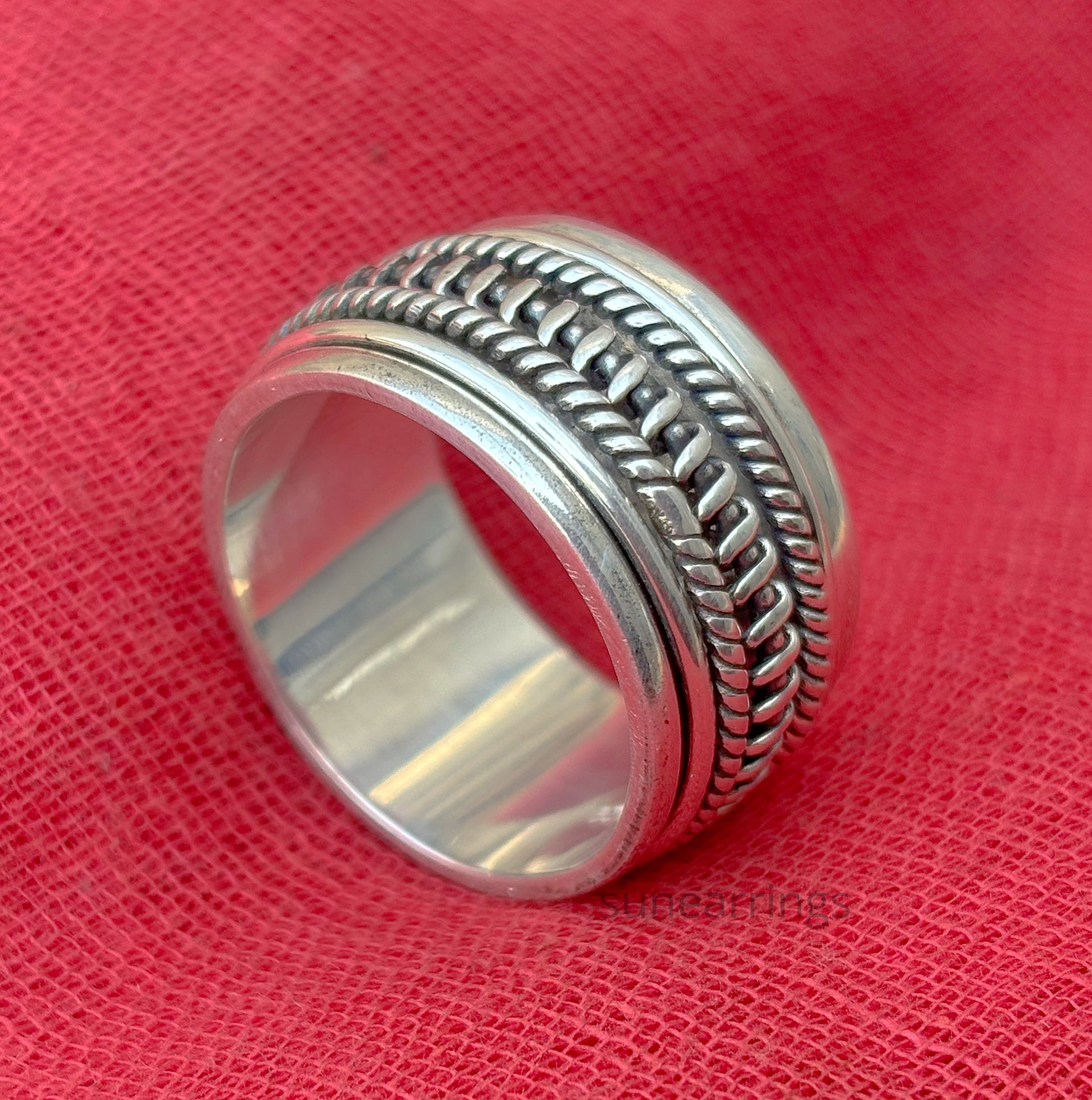 925 Sterling Silver Spinner Band Ring, Meditation Thumb Ring, Braided Spinner Fidget Ring, Statement Ring, Handmade Oxide Spinner Ring