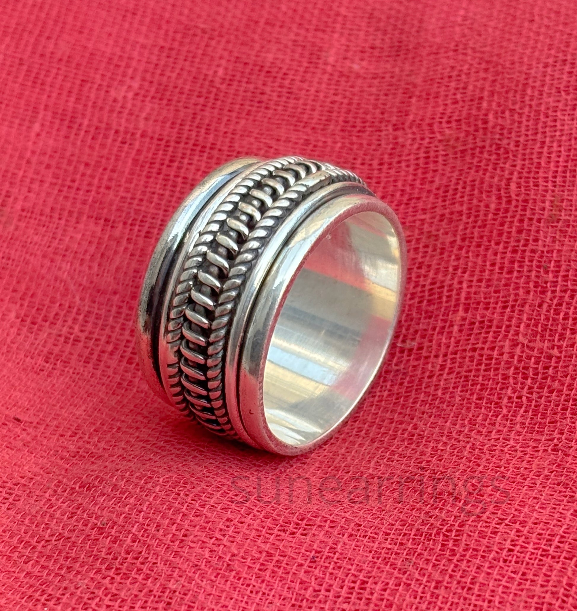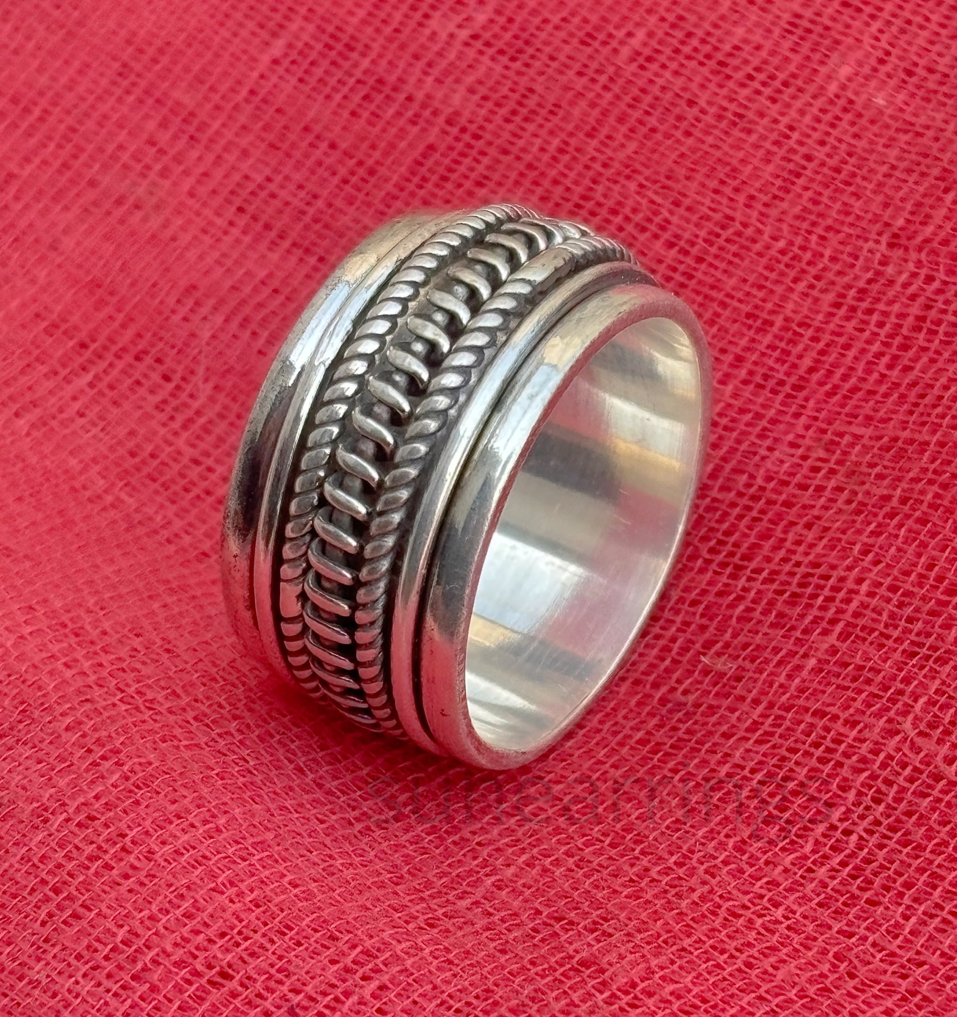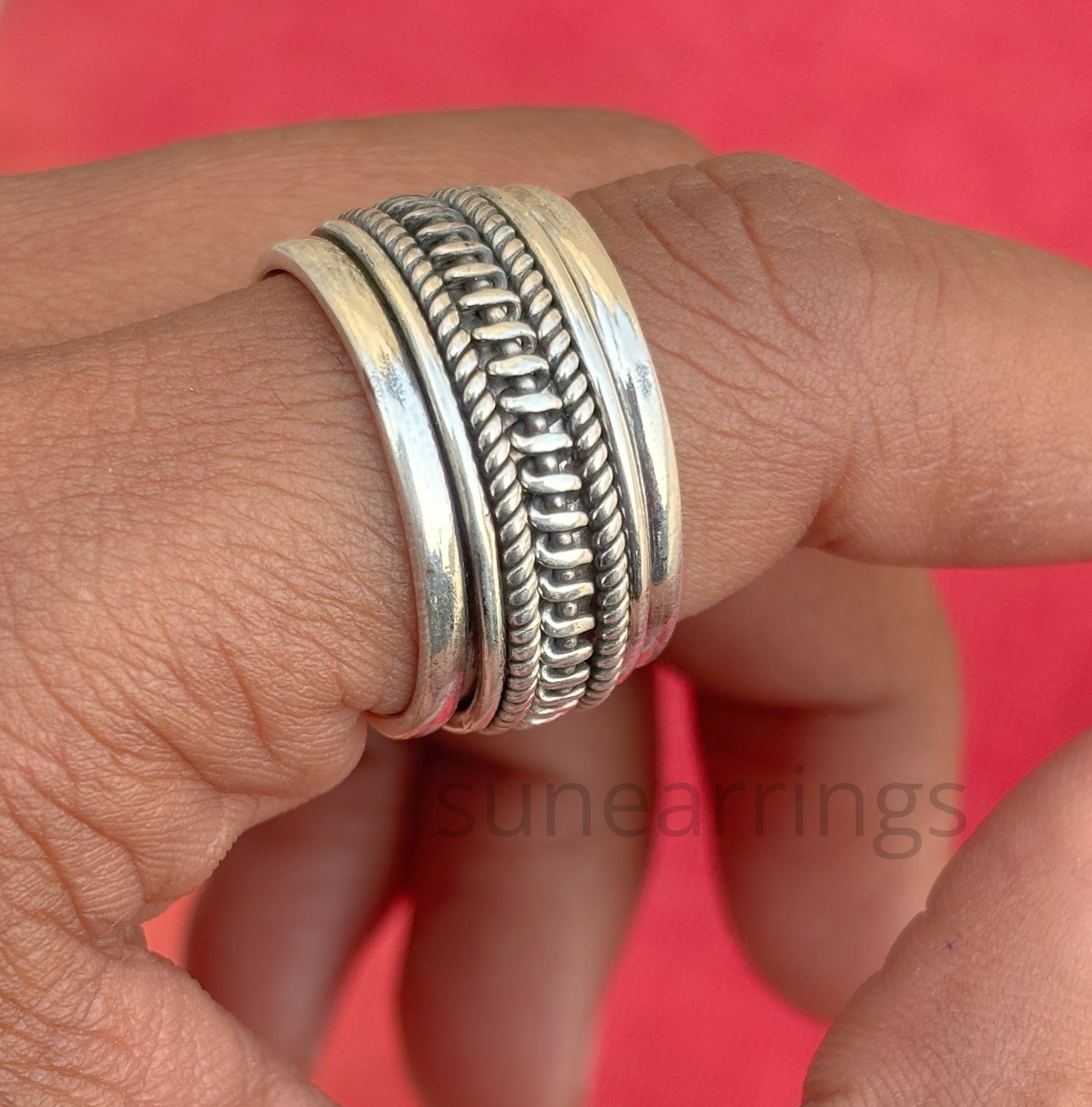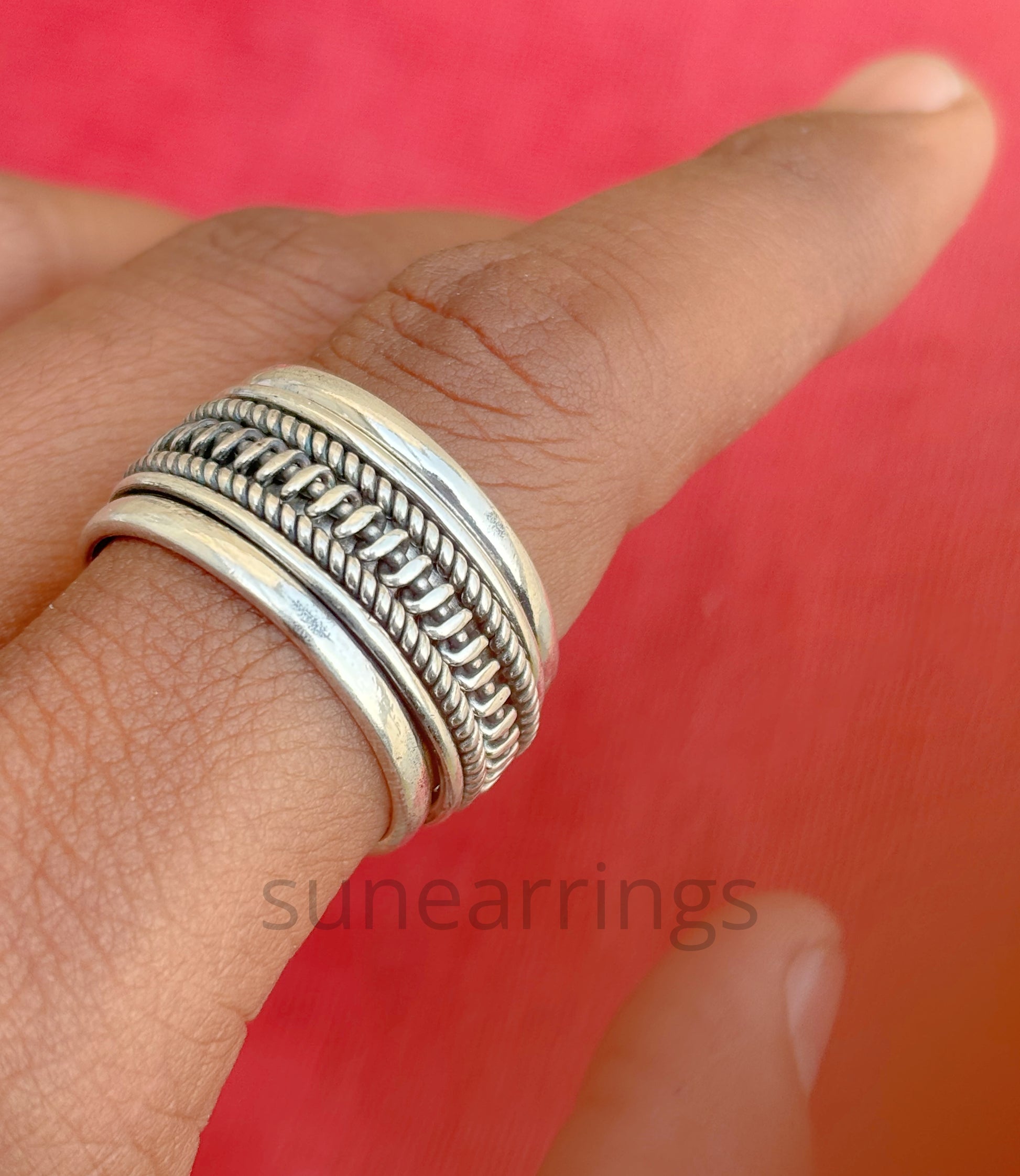 925 Sterling Silver Spinner Band Ring, Meditation Thumb Ring, Braided Spinner Fidget Ring, Statement Ring, Handmade Oxide Spinner Ring