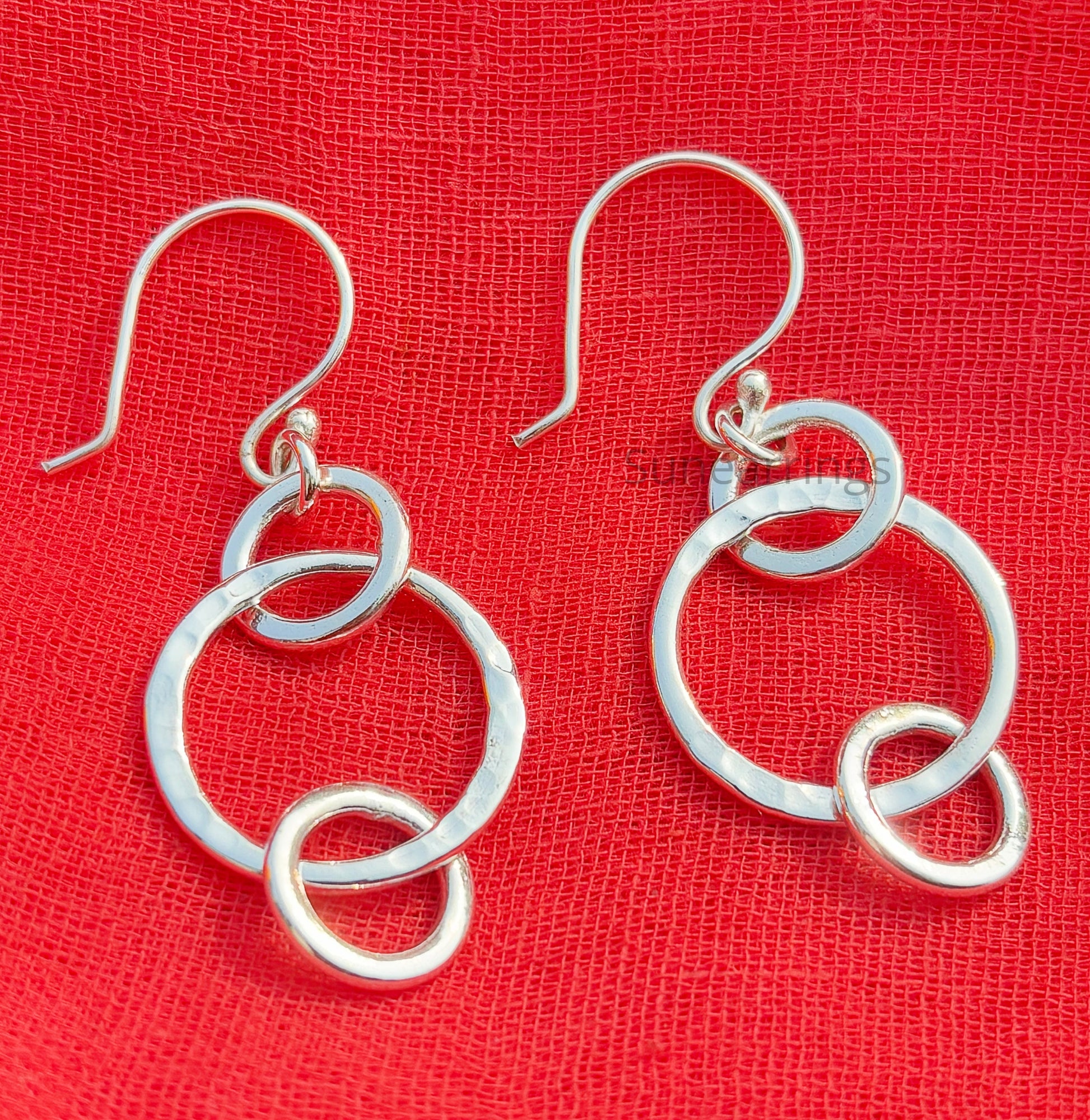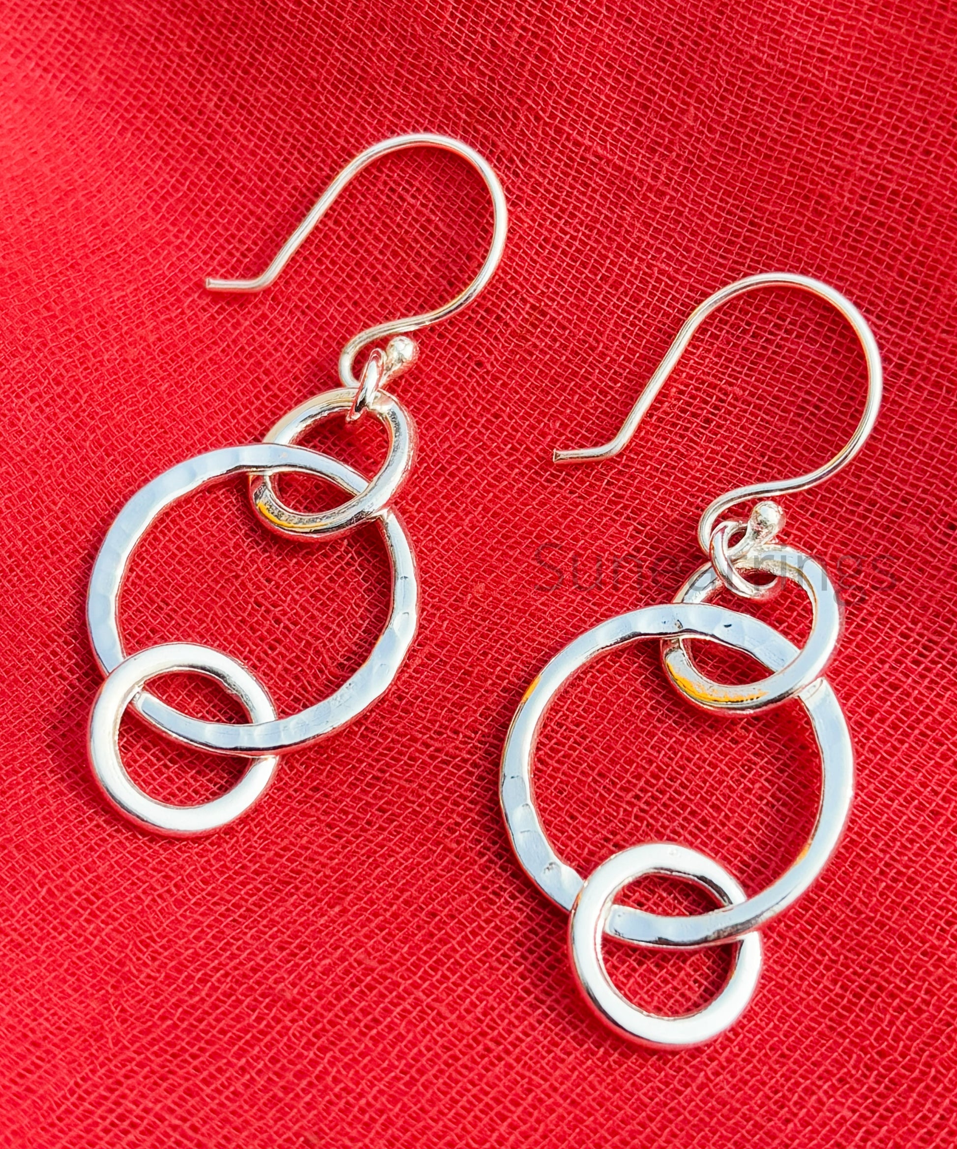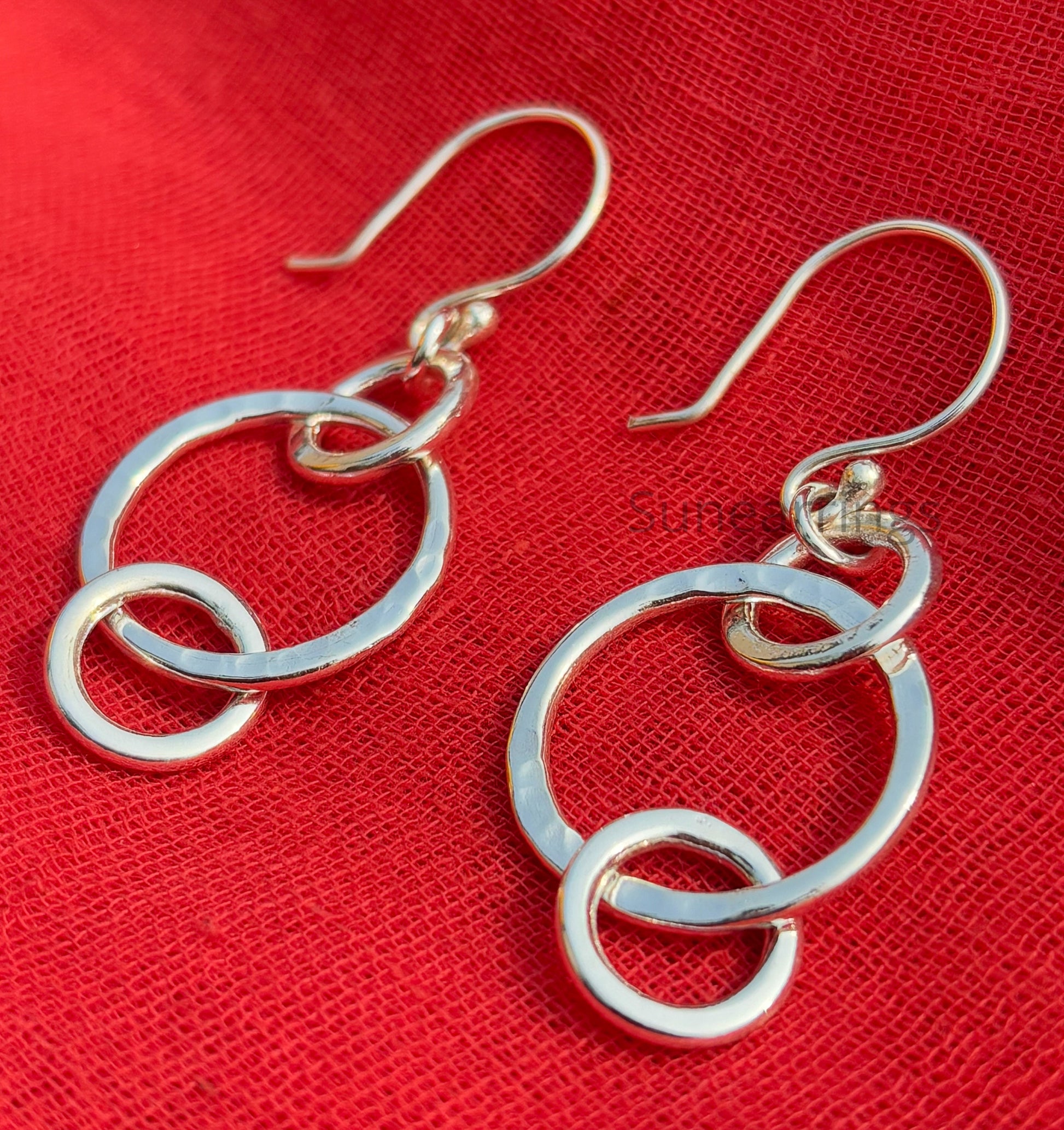 Hammered Circle Earrings- 925 Sterling Silver Earrings-Open Circle Earrings-Dangling Earrings-Minimalist Jewelry-Rounded Circle Earrings-Gifts For Her