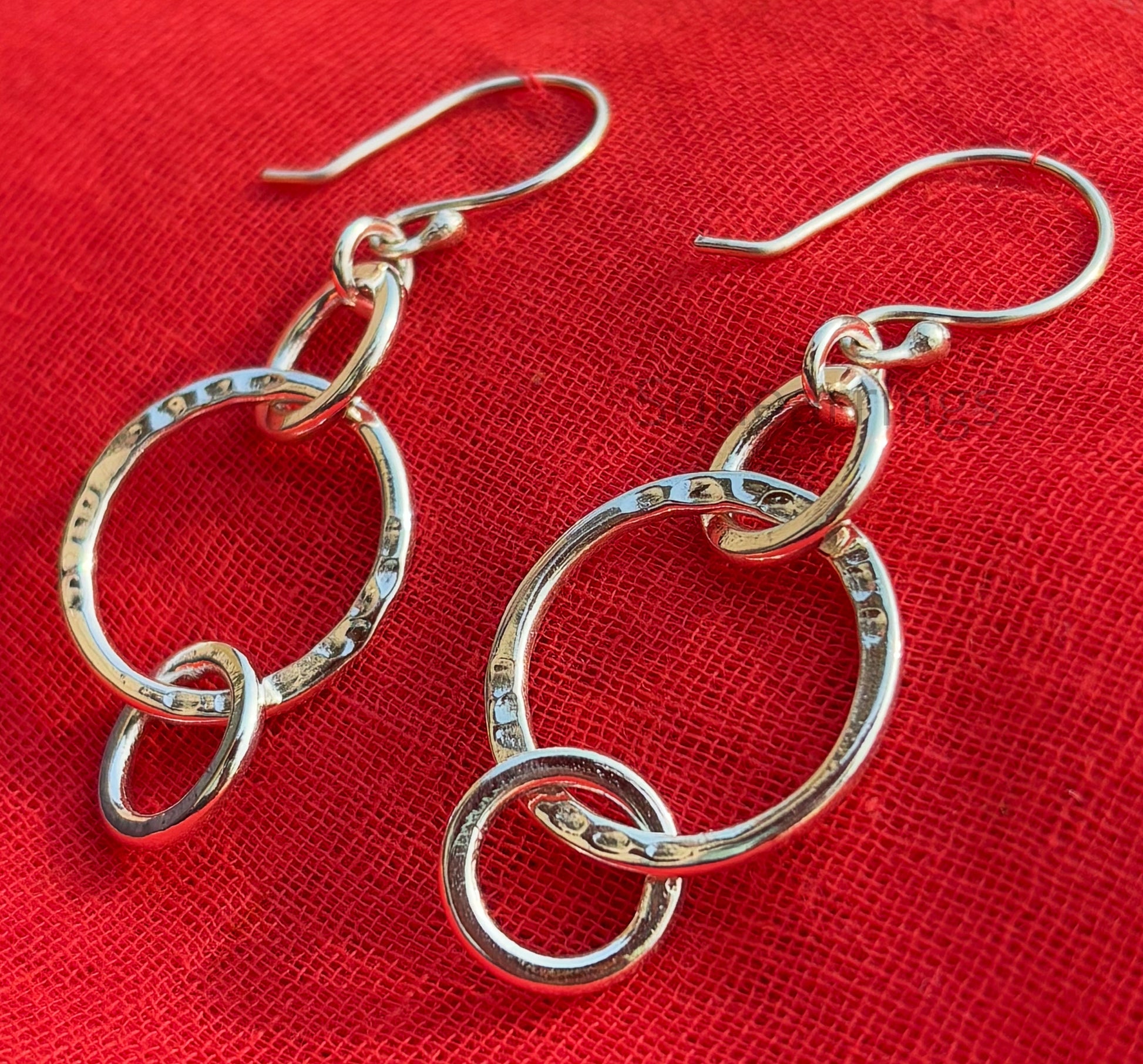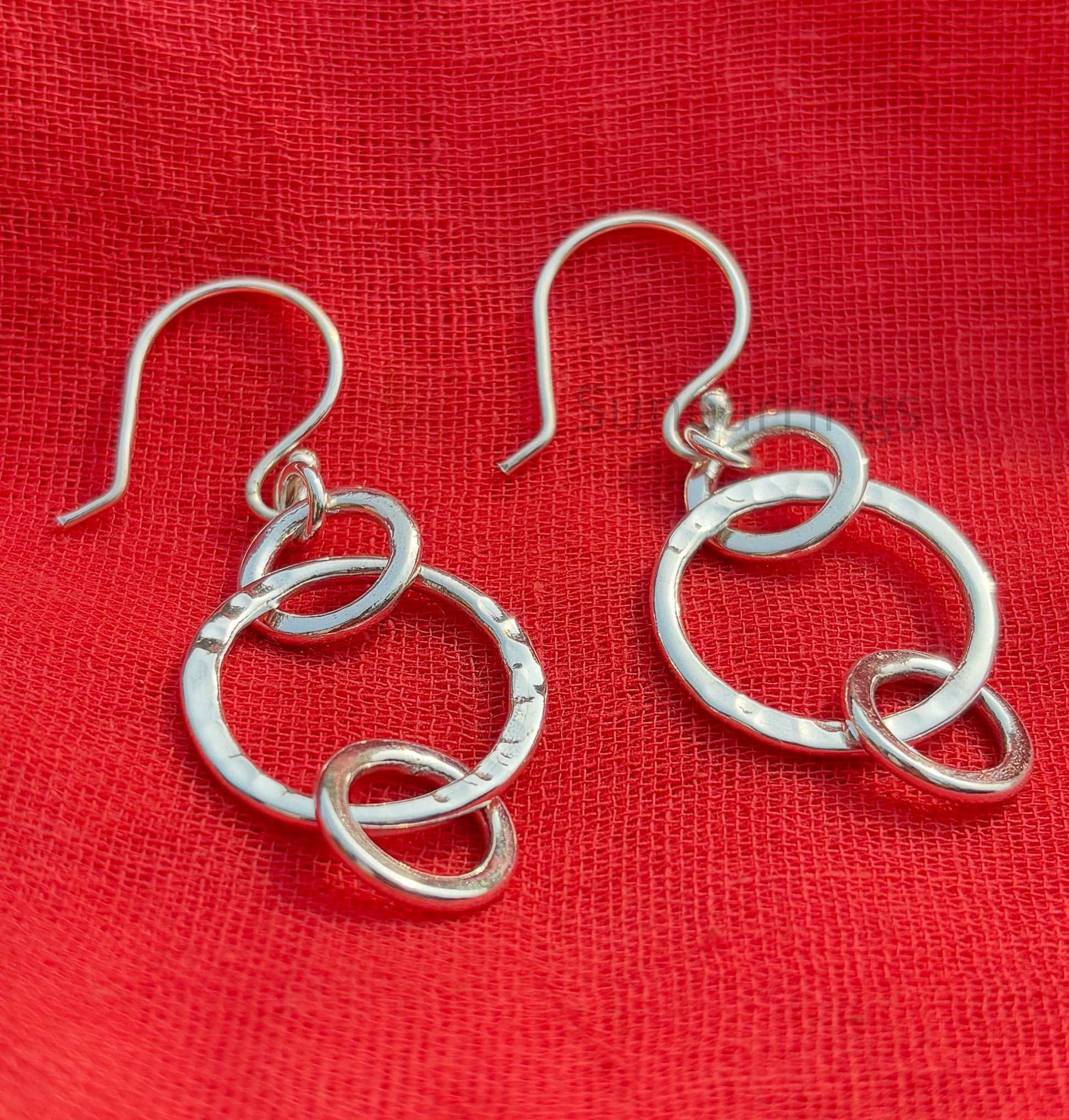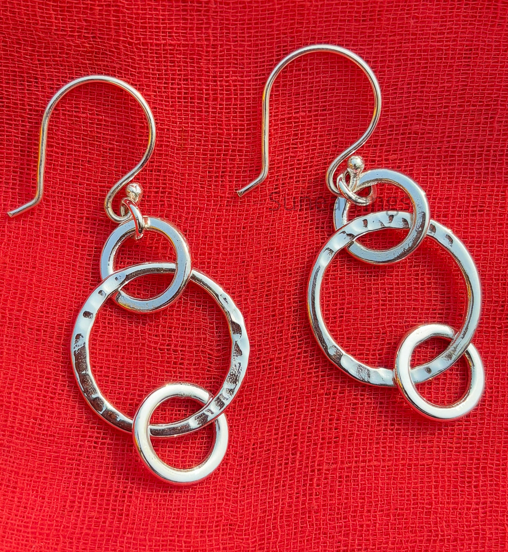 Hammered Circle Earrings- 925 Sterling Silver Earrings-Open Circle Earrings-Dangling Earrings-Minimalist Jewelry-Rounded Circle Earrings-Gifts For Her