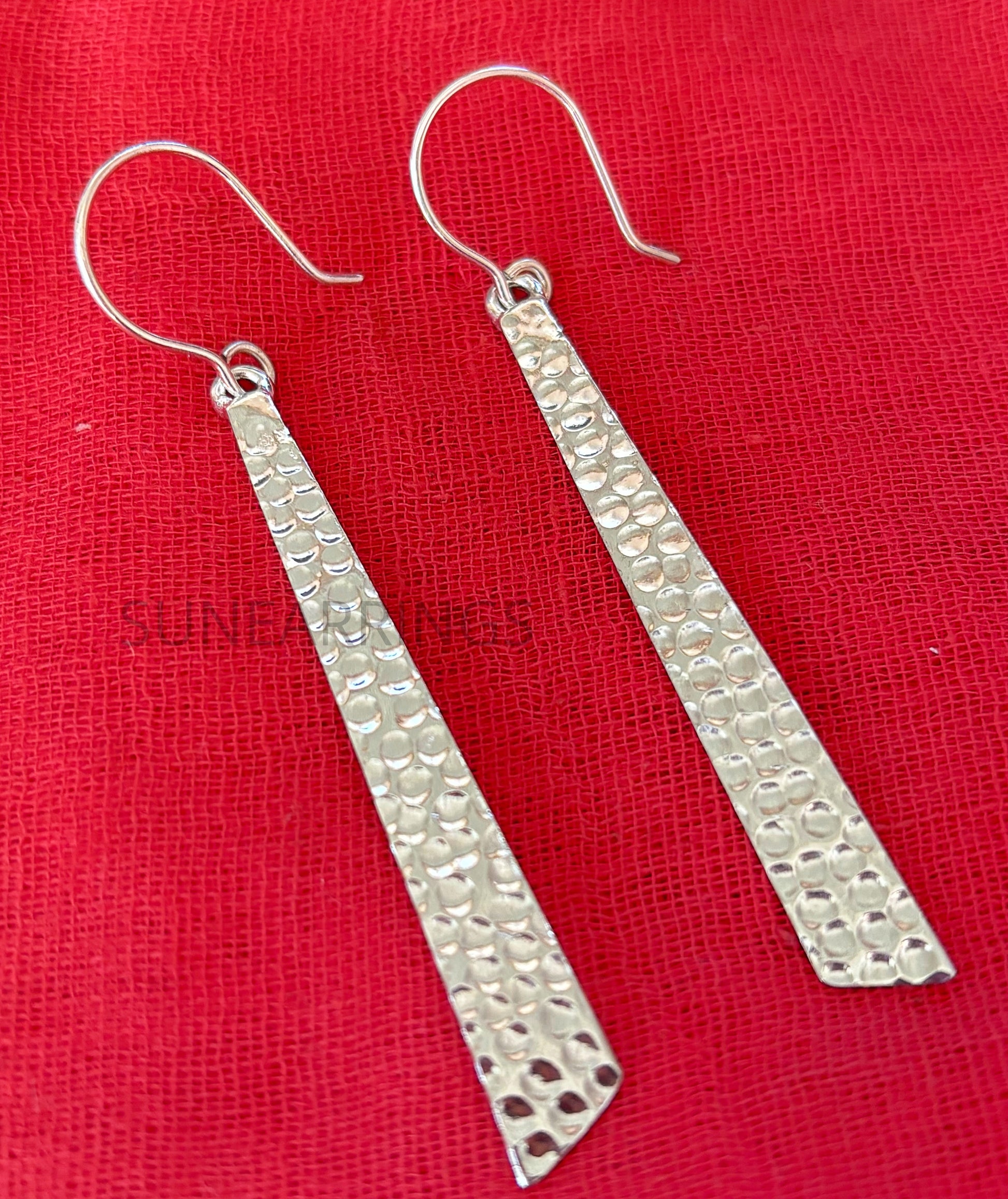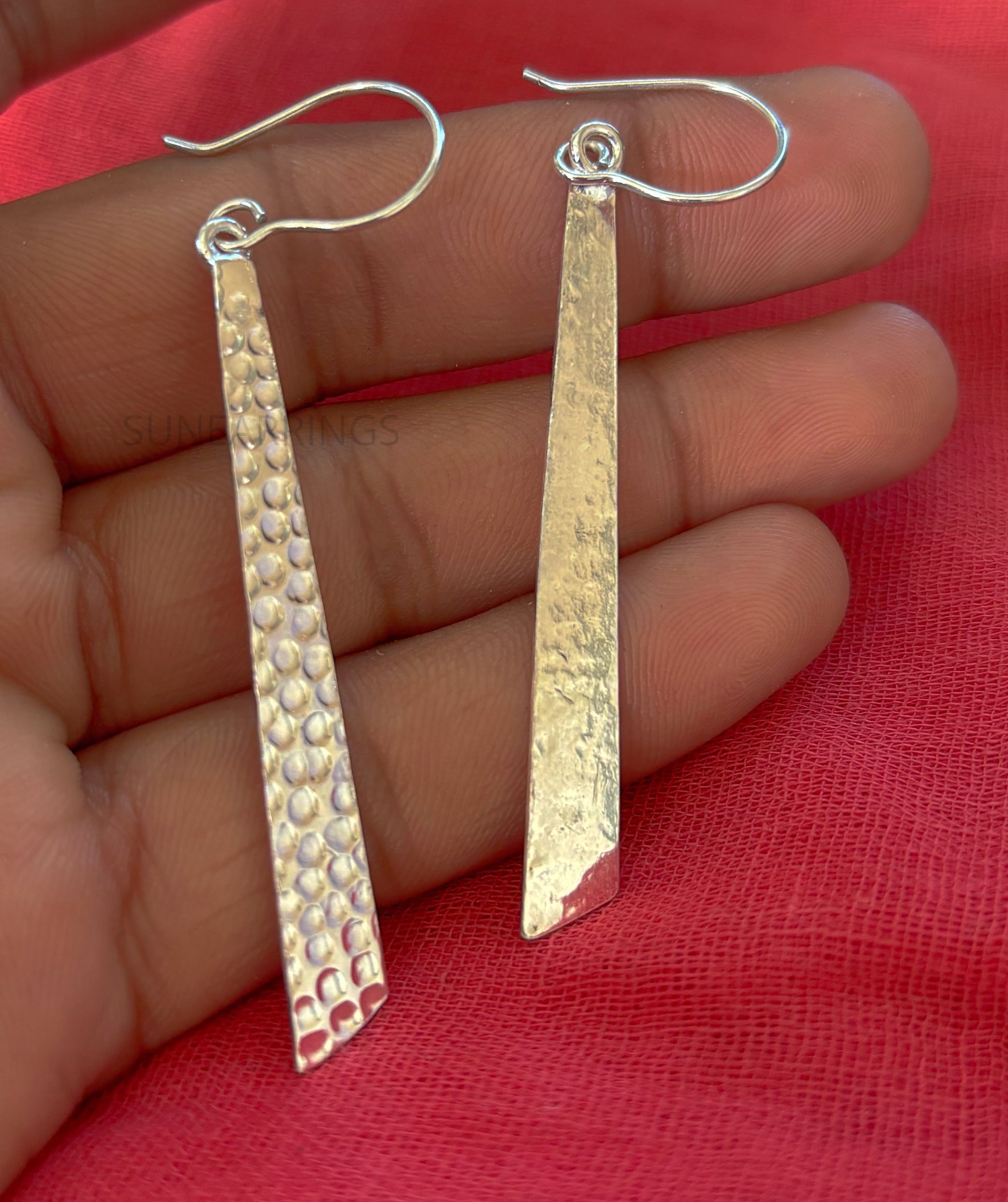Make a bold statement with these stunning handmade earrings crafted from high-quality 925 sterling silver. Featuring a unique long shield design, these earrings measure approximately 45mm in length and weigh around 8.10 grams. Perfect for adding a touch of elegance and edge to any outfit.