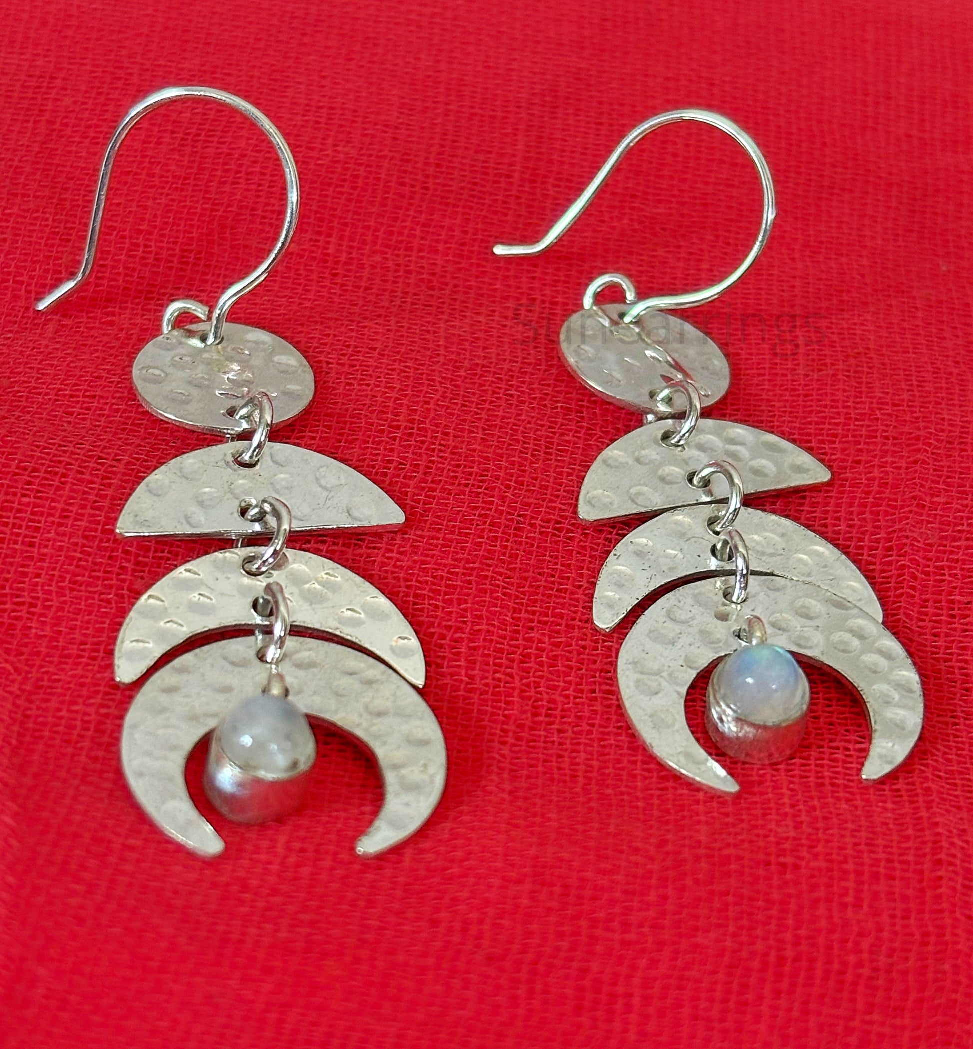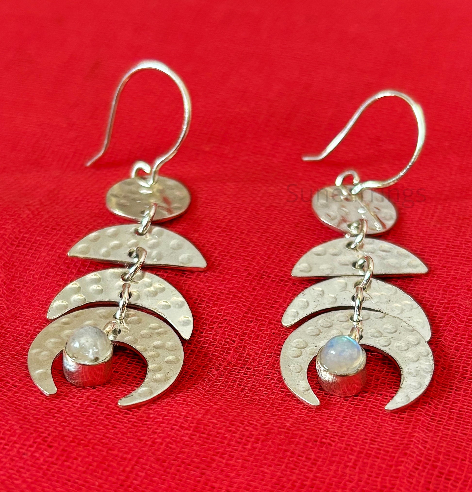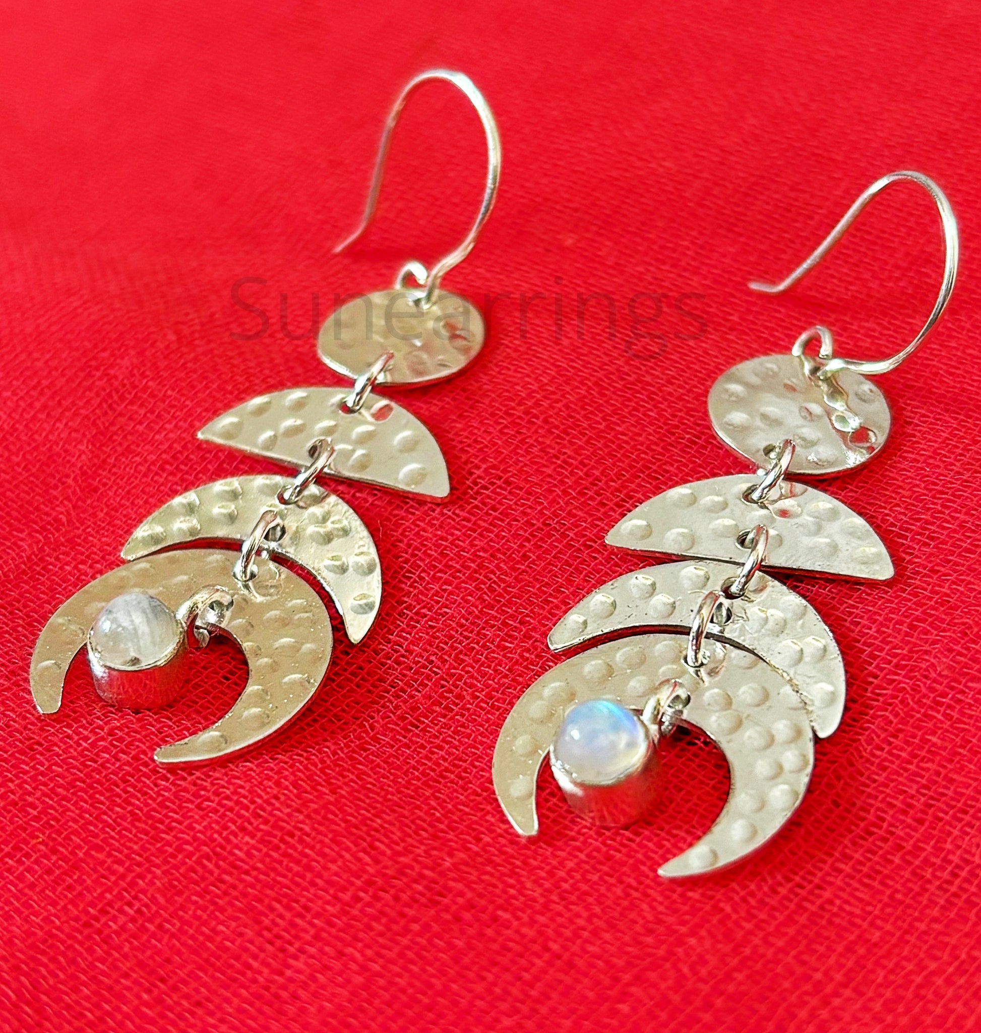Moonstone Earrings-925 Sterling Silver Hammered Moon Earrings-Multi Moon Earrings-Dangling Earrings-June Birthstone-Statement Women Earrings-Anniversary Gifts