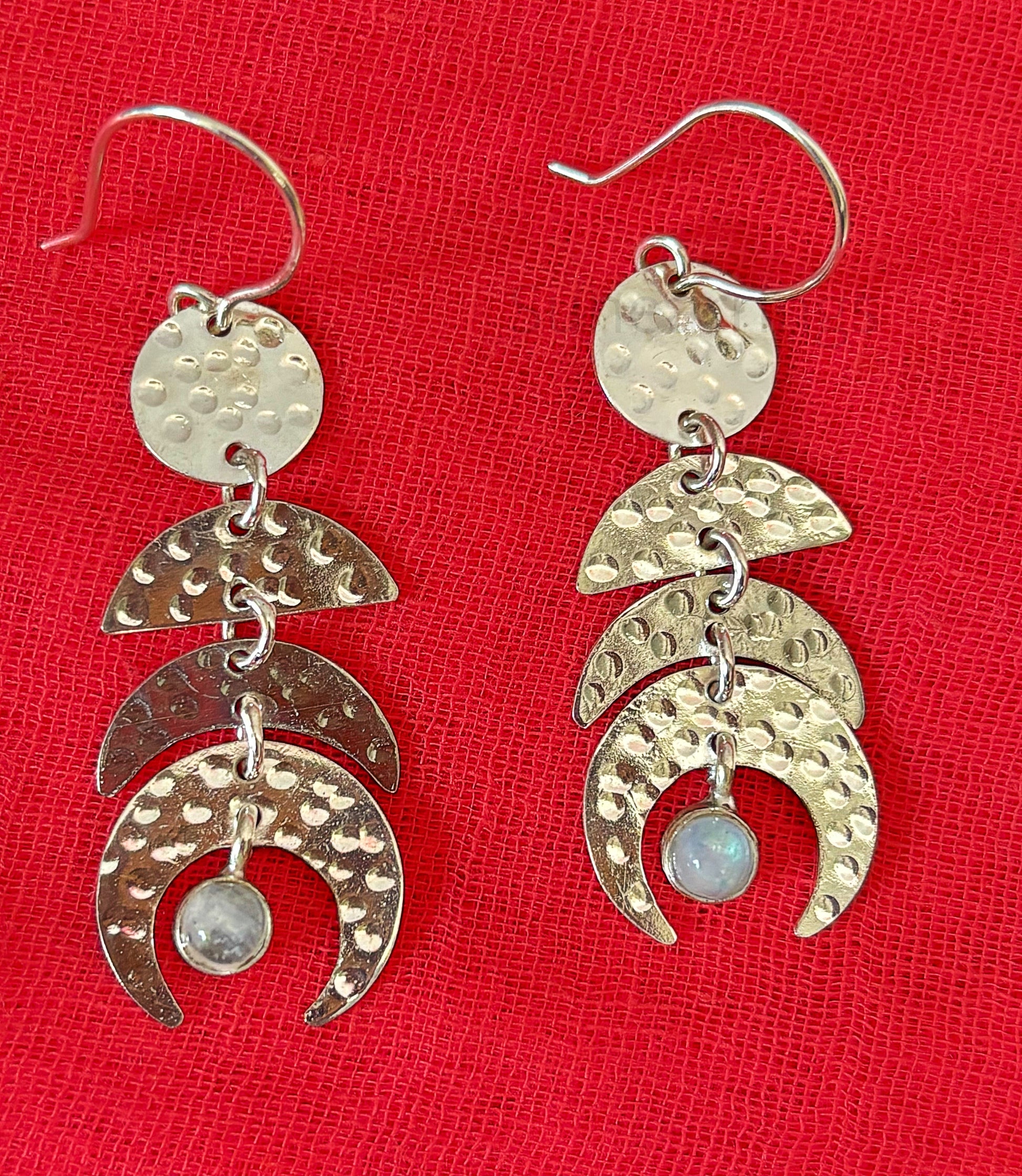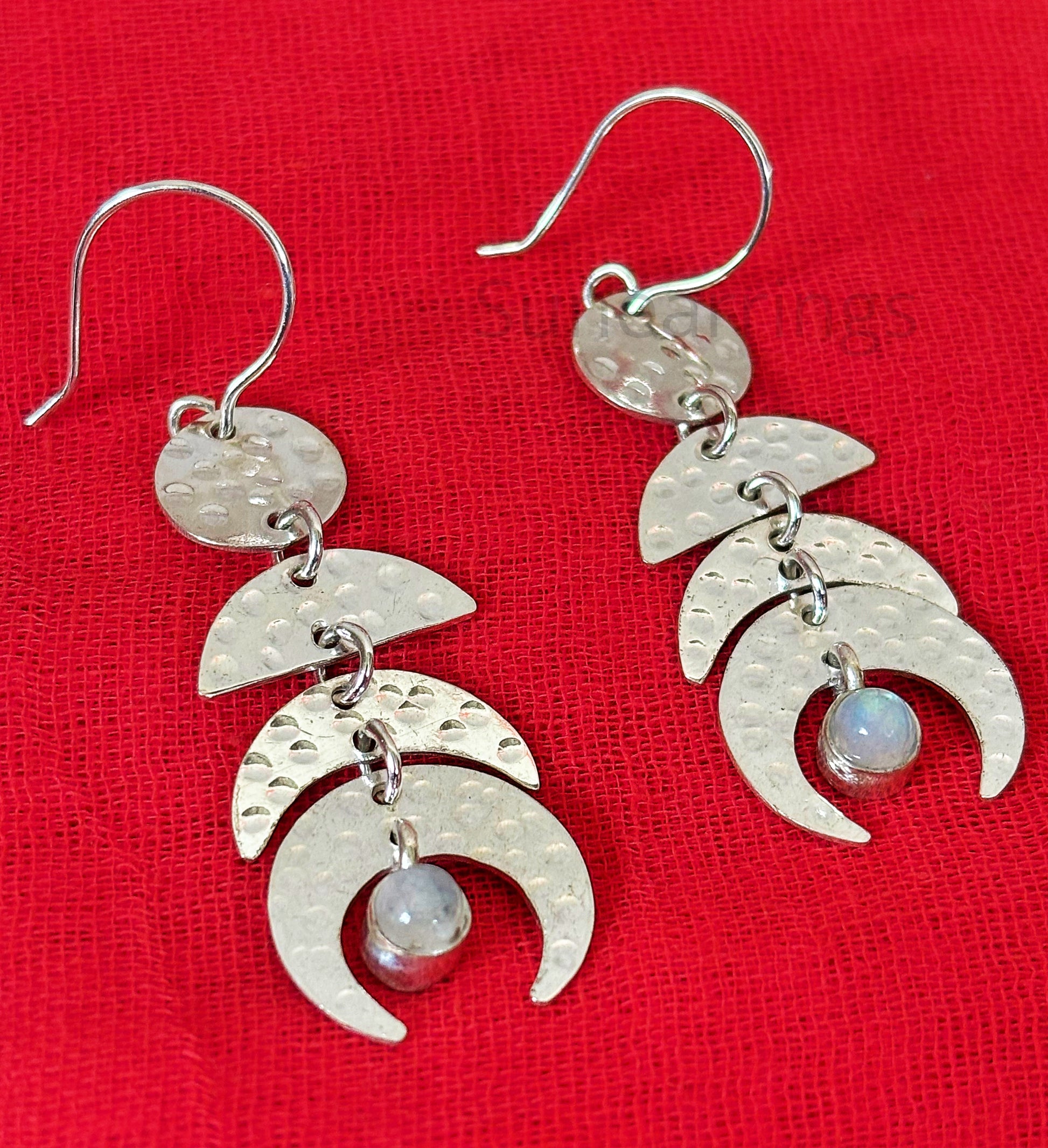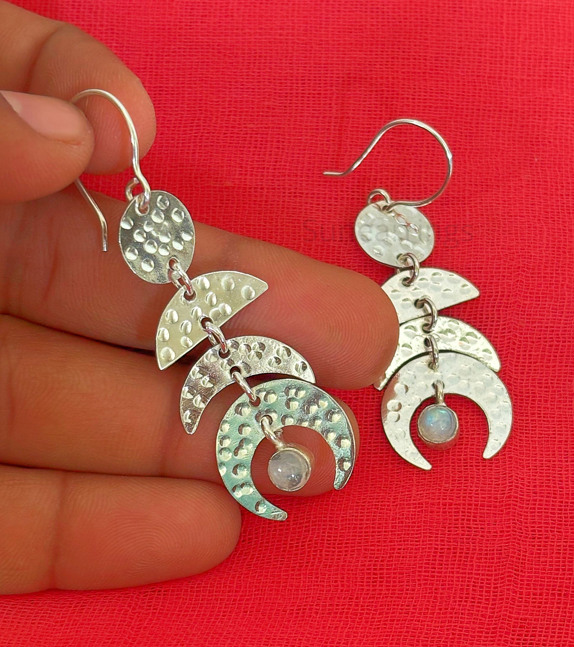 Moonstone Earrings-925 Sterling Silver Hammered Moon Earrings-Multi Moon Earrings-Dangling Earrings-June Birthstone-Statement Women Earrings-Anniversary Gifts